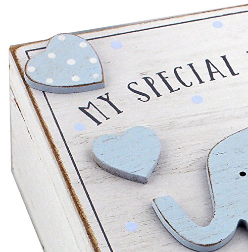 Baby Boy herinneringsdoos herinneringen gemaakt van hout vintage stijl mooi baby/doop/verjaardag/kerstcadeau. Deze houten doos is de ideale manier om gegevens op te slaan die belangrijk zijn. De box is voorzien van scharnieren voor gemakkelijk openen en wordt geleverd met een verhoogd hart en verschillende Mijn speciale herinnering. Afmetingen (HxBxD): 7 W: 16 D: 16 cm