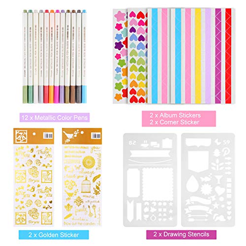⭐⭐【21 stuks set scrapbook fotoalbumsets】 1 x scrapbooking, met 12 x metallic stiften, 2 x album stickers, 2 x gouden stickers, 2 x tekensjablonen. In totaal 20 stuks scrapbook accessoires decoraties om zelf uw gepersonaliseerde fotoalbums te maken. Perfect gereedschap voor handgemaakte ideeën om je herinneringen te bewaren. Plus: als je niet zoveel accessoires hebt ontvangen, neem dan contact met ons op.