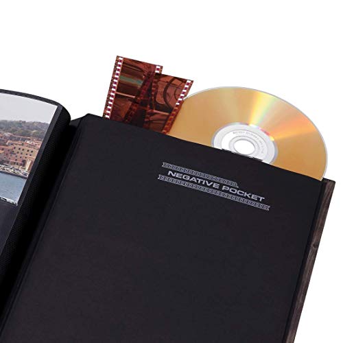 Hoogwaardig fotoalbum: fotoboek met stevige omslag, zwarte binnenpagina’s met insteekvakken en cd-vak aan de achterkant van het fotoalbum