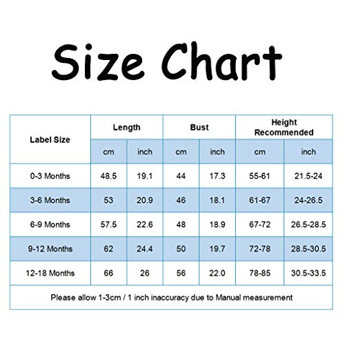 Maatinformatie: onze babyrompers pyjama voor lichaamslengte 56-78cm baby jongens en meisjes. Raadpleeg onze maattabel.