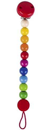 Kleurrijk goedhumeur – Grappige Rainbow luiertaart met stippen in regenboogkleuren met schattige stippen. Daarnaast is er de bijpassende fopspeenketting en een grijpbal van houten kralen van Goki en twee babylepels. Bij de luiertaart met 2 verdiepingen worden 44 luiers van maat 3 (midi, 4-9 kg) verwerkt.