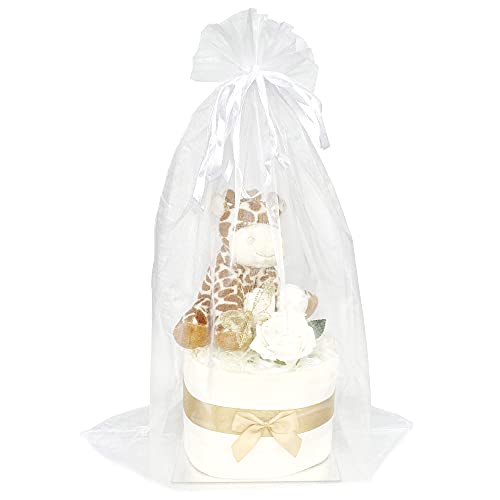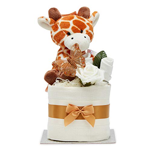 Luiertaart Neutraal Baby Gift – Vierkante mousseline Wraps 9 luiers, babysokken en zachte speelgoed Baby Giraffe