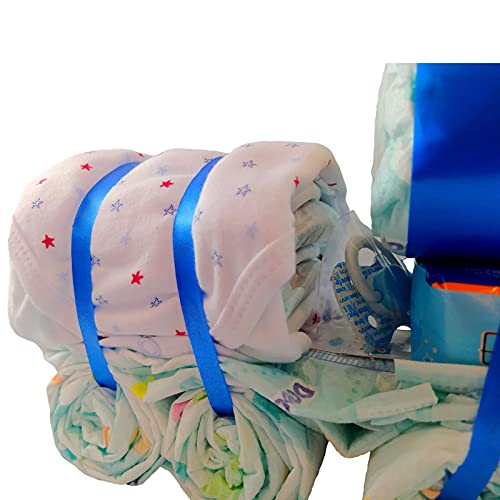 Prachtige luier met wagen, een leuk cadeau voor pasgeborenen of zwangere vrouwen. Bevat: 29 Dodot luiers maat 3 (4 tot 10 kg), 1 fysiologische siliconen fopspeen + 0 m, 1 bedrukte body, 1 pak vochtige doeken.