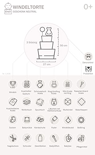 Specification: MomsStory Koala luiertaart neutraal | babycadeau voor geboorte doop babyshower | 3 verdiepingen (grijs) XXL groot | met…