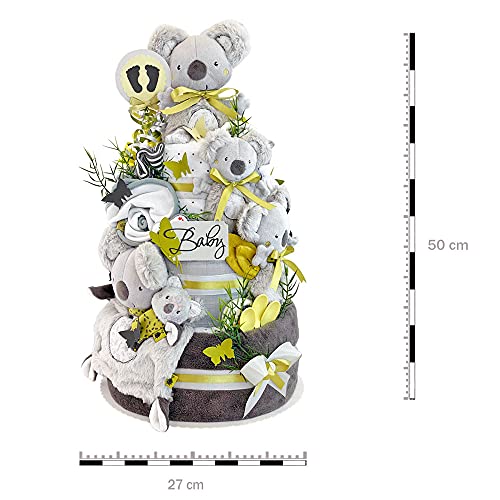MomsStory Koala luiertaart neutraal | babycadeau voor geboorte doop babyshower | 3 verdiepingen (grijs) XXL groot | met…