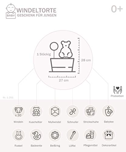 Specification: MomsStory – luiertaart jongen | giraffe | babycadeau voor geboorte doop babyshower | 1 verdieping (turquoise-bruin) met…