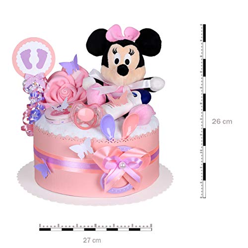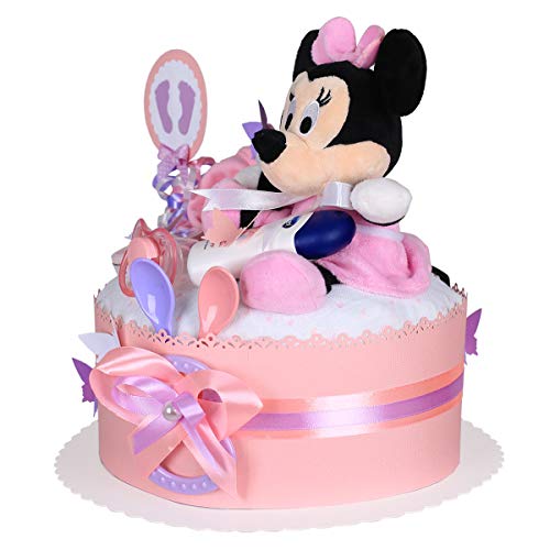 Specification: MomsStory Minnie Mouse Disney luiertaart voor meisjes, babycadeau voor geboorte, doop, babyshower, 1 verdieping (roze…