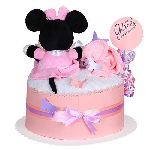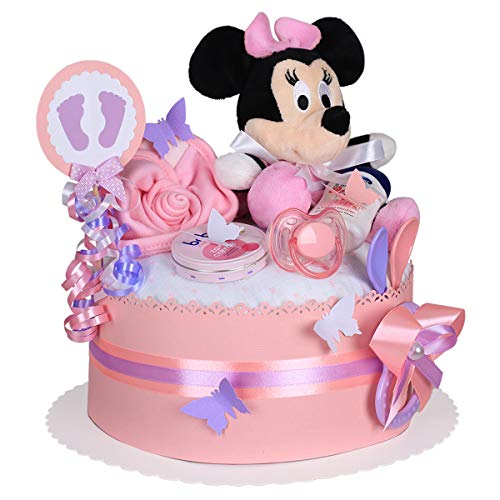 MomsStory Minnie Mouse Disney luiertaart voor meisjes, babycadeau voor geboorte, doop, babyshower, 1 verdieping (roze…