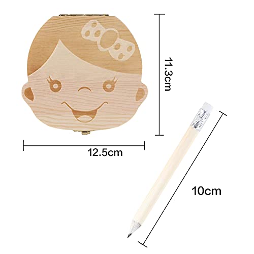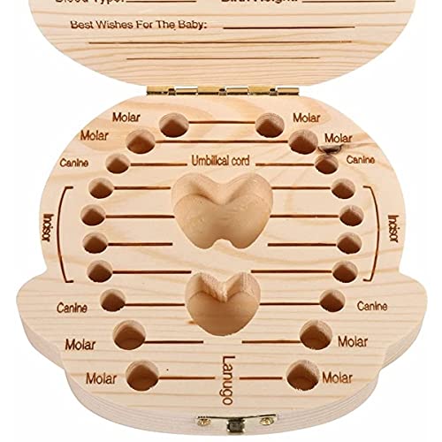 Specification: Tandenbox hout met 2 pennen om de geschiedenis van de tandfee vast te houden, voor het bewaren van tanden, geboorteband…