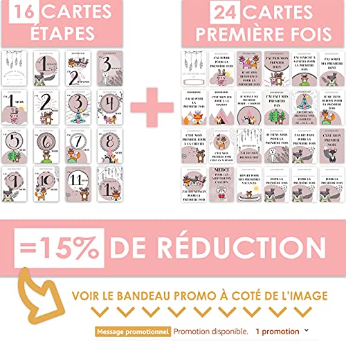 Nooit verschillen: de tijd verloopt zeer snel, houd elk moment vast met je dochter of je jongen vanaf het eerste jaar (“welkomstkaarten, “1 week” tot “1 jaar”)